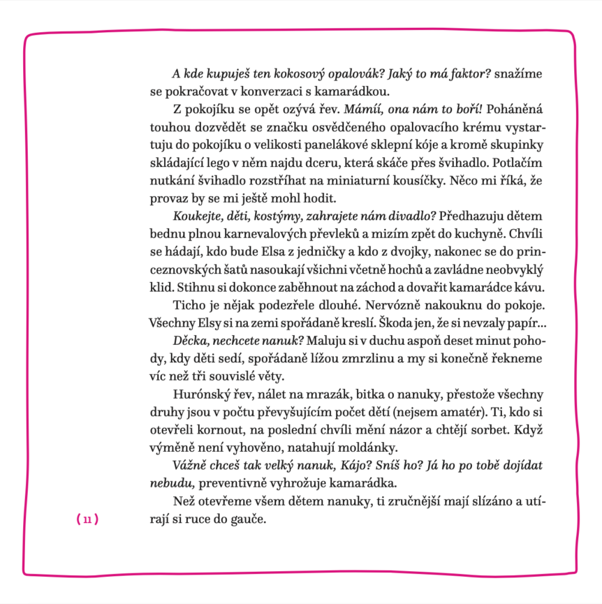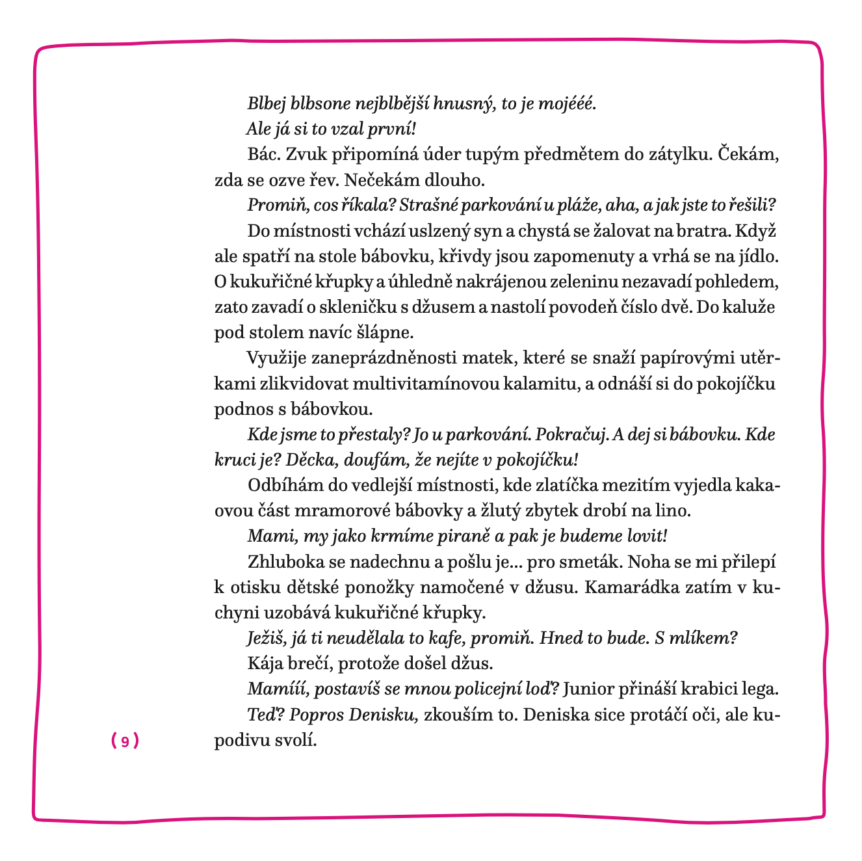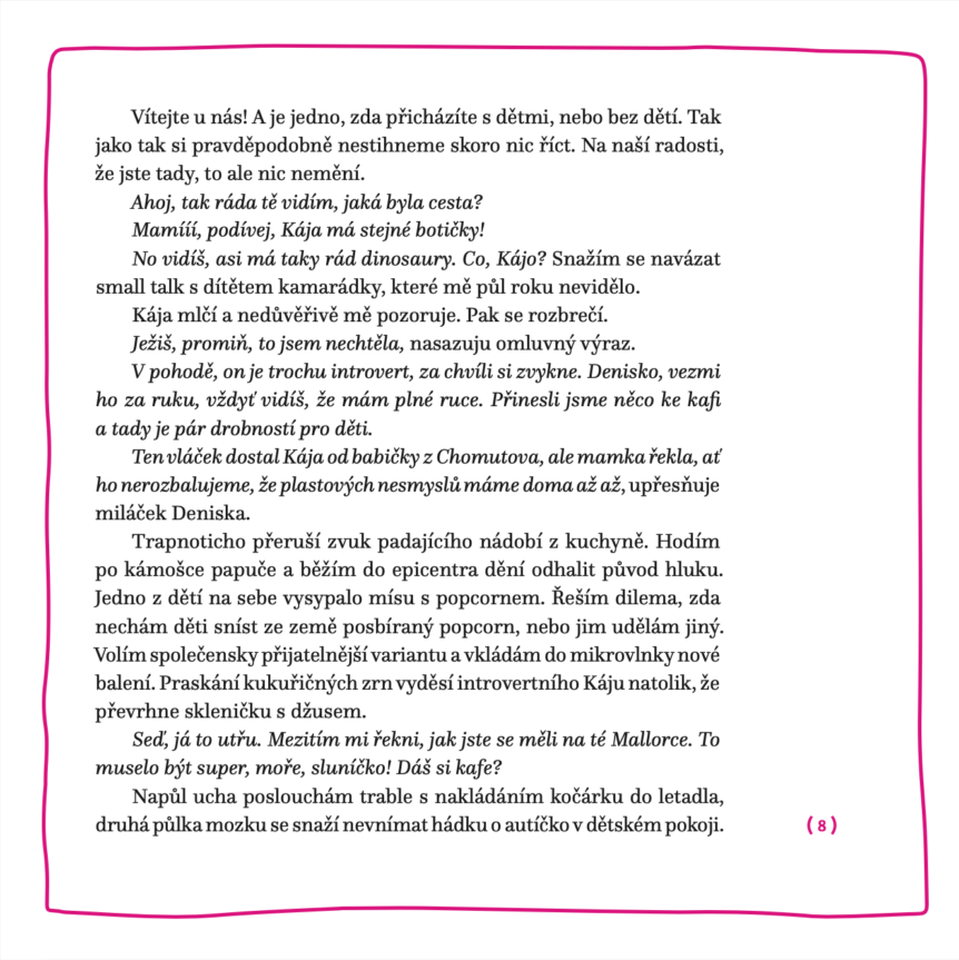 Knížka, kterou vytáhnete z kabelky ve chvíli, kdy si dítě chvíli hraje samo na písku. Kdy konečně usne v kočárku a vy máte pár minut pro sebe.